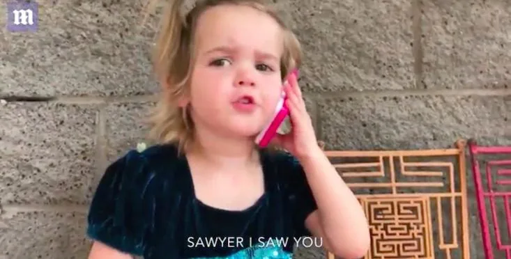 Mint minden magára valamit is adó 2 éves, úgy döntött, hogy vegye fel a hamis rózsaszín telefon, illetve adja Sawyer egy darab a fejéből.