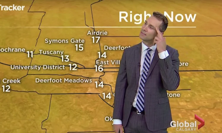 GlobalNews Időjós Jordan Witzel, Calgary, Kanada, volt egy elég vicces kavarodás a TV-ben, amikor zavaros “lengő” (mint a játszótéren, amikor egy gyerek) egyéb a fajta “lengő” (ahogy a hippi nagy néni Joyce, aki a “speciális barátod” Phil valószínűleg a ’60-as években).